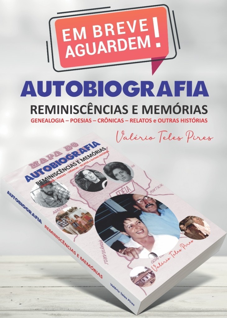 O escritor Valério Teles Pires soma sua autobiografia ao conhecimento público da genealogia da Família Pires, por meio da pesquisa sobre antepassados e de suas reminiscências do seio das famílias Martins da Rocha e Pires de Moraes. Valério é filho de Cláudio Martins Pires e neto de Bárbara Pires de Moraes e de Francisco Martins da Rocha, além de bisneto de Quintiliano Pires dos Santos e de Francisca Vieira de Moraes. Valério é um dos convidados especiais para o lançamento da terceira edição do livro da Família Pires, em Acreúna-GO, amanhã, dia 28 de setembro.